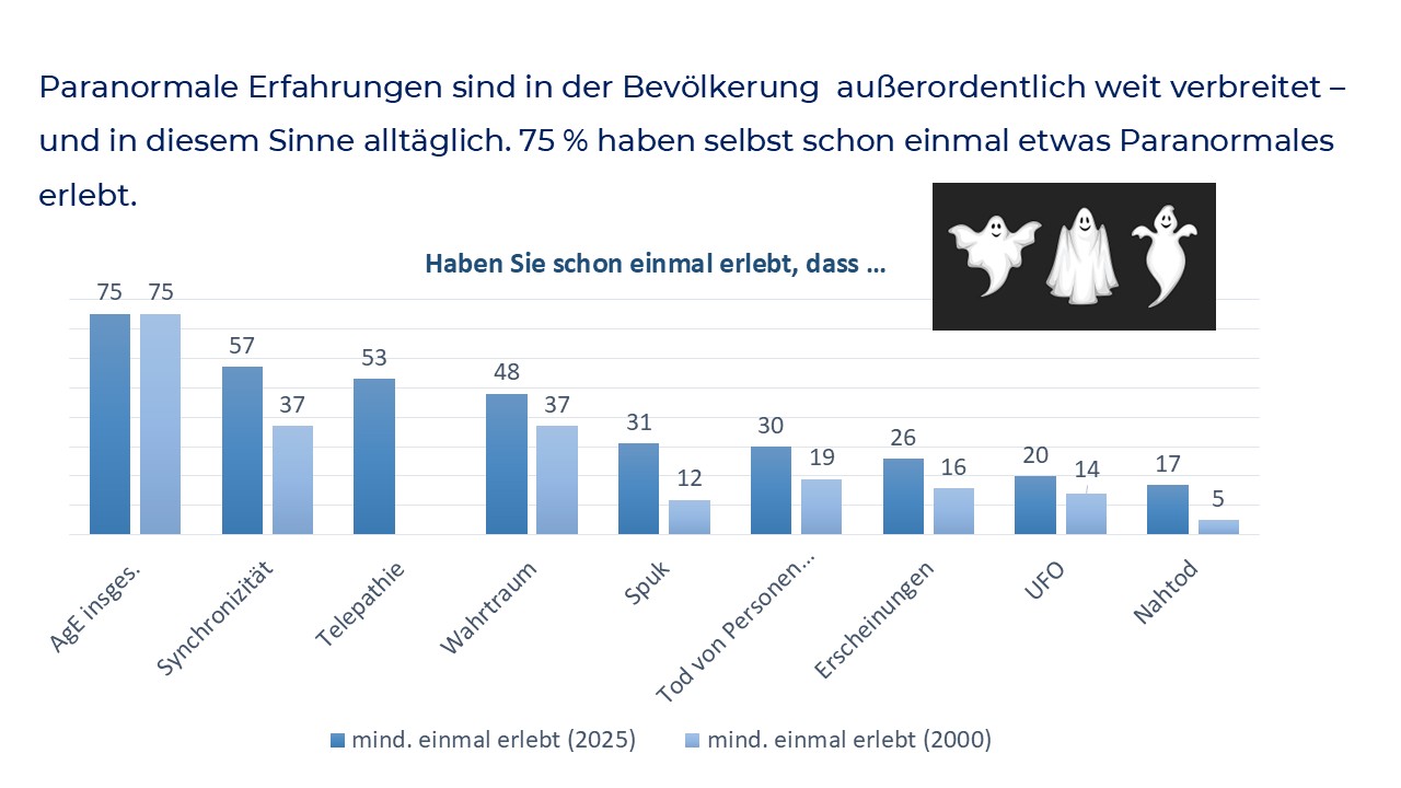 Es war Hans Bender, der die These von der Gleichförmigkeit des Okkulten formulierte. Gemeint ist, dass es zu allen Zeiten und in den meisten Kulturen übersinnliche Erscheinungen gibt, wobei diese Phänomene in verschiedenen Gesellschaften erstaunlich ähnliche Erscheinungsformen und Funktionsweisen aufweisen. Dies gilt nicht nur für Geisterglauben, Magie, Mystik und vergleichbare okkulte Praktiken und Überzeugungen, sondern auch für übersinnliche Erfahrungen, von denen Menschen überall und immer wieder berichten. Unter dem Titel „Alltägliche Wunder“ hat das IGPP in der jüngeren Vergangenheit zwei repräsentative Umfragen zur Vorstellbarkeit und zum Vorkommen paranormaler Erfahrungen durchgeführt. Die Ergebnisse zeigen, dass das Paranormale, das Übersinnliche oder das Okkulte auch heutzutage keineswegs selten ist. Weit mehr als die Hälfte der deutschen Bevölkerung hat schon einmal etwas Paranormales erlebt und kennt Phänomene wie Telepathie, Wahrträume, UFO-Sichtungen oder Erscheinungen Verstorbener aus eigener Erfahrung.